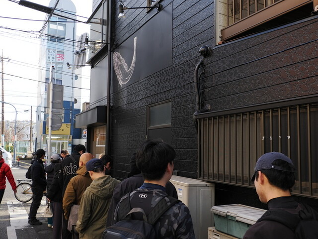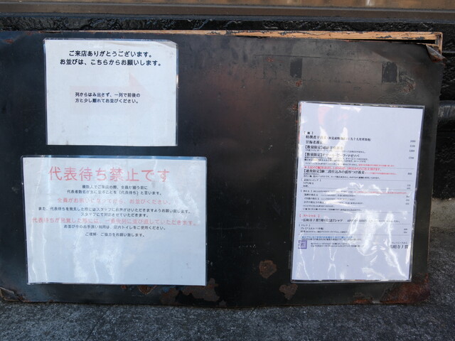 お店に着いたのは、ほぼ11時ジャスト。店横には行列5人。前回よりは混んでます。11時1分ごろお店に招き入れられました。9席あるので、ワタクシも入れました。