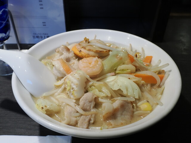 ㊗丿貫福富町本店9周年限定!真鯛白湯スープを使用した長崎ちゃんぽん。帆立、海老、イカ、豚バラ、かまぼこ、野菜。