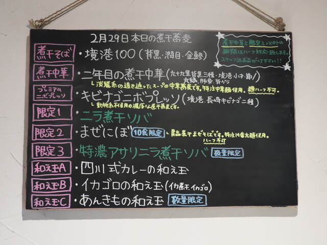 ワタクシはXで予習してきましたが、10食限定のまぜにぼは無理だろうと思い、キビナゴののニボプレッソと何かにしようと思っていましたが、まぜにぼありました。というわけで、まぜにぼとキビナゴニボプレッソにしました。