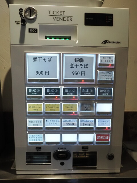 ワタクシのチョイスは「伊吹いりこの冷やかけ」と「銀鱗カワハギ煮干蕎麦」に、「うずら味玉」を付けます。