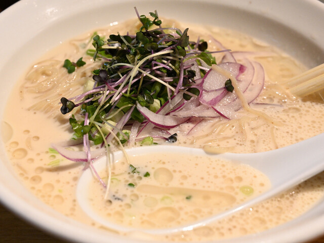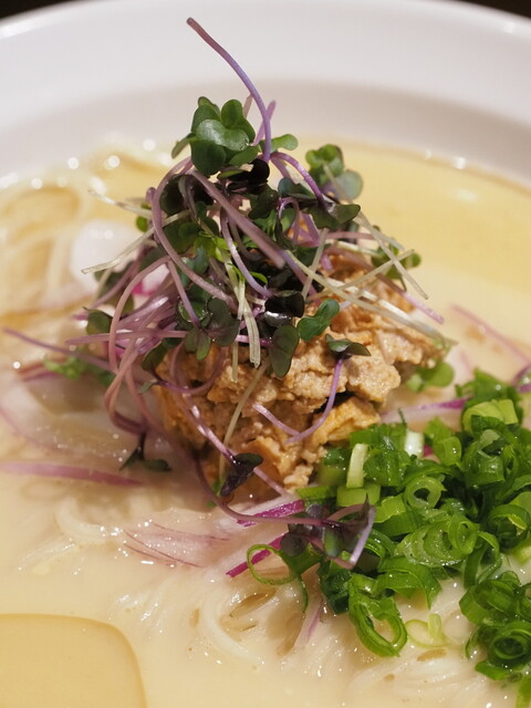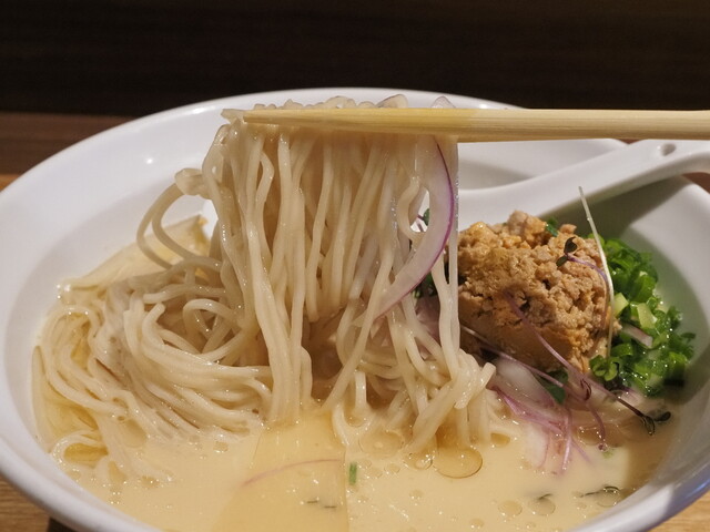 スープに上澄みのような透明な部分がありました。油かな?と思ったら違います。動物系不使用ですから(そう書いてある)。味見すると、すごい香ばしい。おお、キビナゴっぽいですね!すごい。