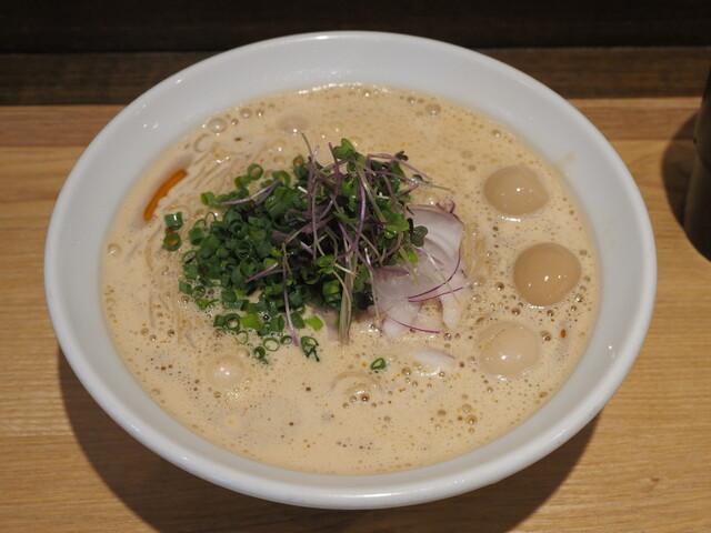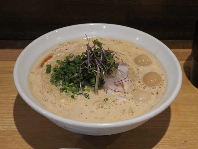 いったん、外に出てしばらく待ちます。店員さんが出てきて食券を回収。うずら味玉はどっちにのせるか、は冷かけにします。冷たい方が味がわかる。どちらを先にするか、おススメは、銀鱗→冷やかけだそうなので、それでお願いすると、ちょっと待ってください、と店員さん、店に確認に戻りました。淡麗→濃厚の原則と、冷→温の原則があるので難しかったのかも。でもどちらも淡麗のような。というわけで、やっぱり、冷やかけが先がおすすめだったので、それでお願いしました。ワタクシはどちらでもいいんですけど。