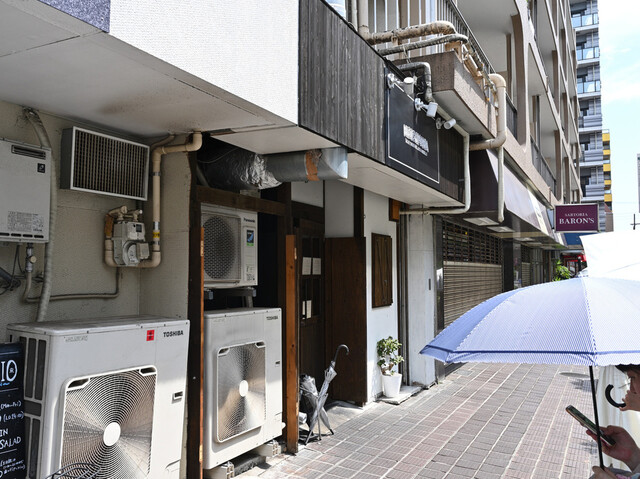 この日は、お店に着くと、店前に行列4人。少ないですね。皆さん、日差しが強いのと、店前に自転車が2台置いてあるので、店側に寄って並んでいます。ワタクシは店前に出してある日傘を借りて列に着きます。5分ほどで食券を買うように店員さんに言われて入店。食券を買います。この日のメニューは