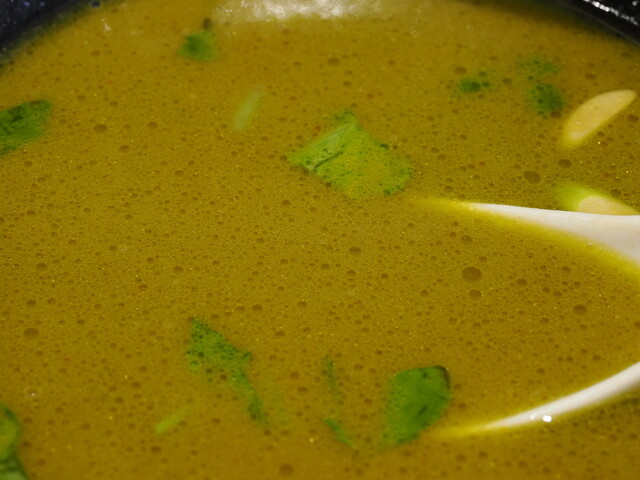 スープはドロドロ。NIBOSHIMANIAさんのプレミアムドニボプレッソ並みですね。やっぱり初日のは特濃ではなかったようです。初日の投稿写真を見ると、水分が分離してましたが、これはまったくそのようなことはありません。