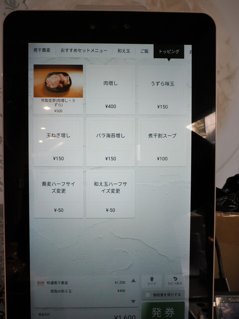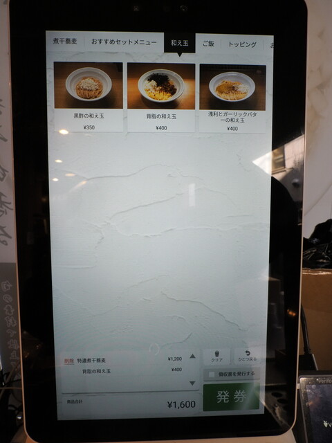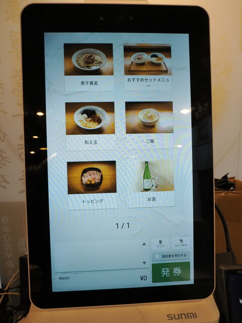 おー、券売機が導入されましたね。アソビル店と同様のタッチパネル式。見通しがきかないのが難点。買った食券は、