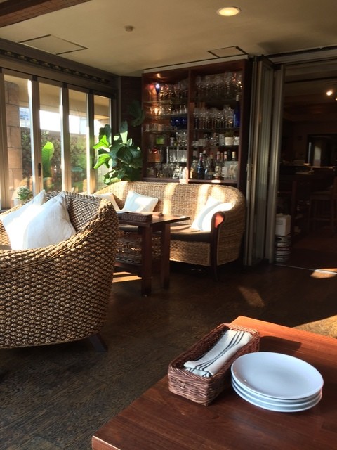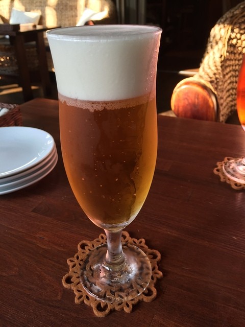 お昼食べてそんな時間経っていない私は、飲むだけでもいいか…食べられそうもないやって思いながら、JR福島駅からポテポテと歩いていました。ようやく着いたお店はまさにopenの時のようです。スタッフの方がすぐに気づいて駆け寄って来られました。予約されている方ですよね、どうぞ!お待ちしていました、テラス側のどのお席でもどうぞ!ってな優しいお言葉かけていただき笑顔で着席しました。
