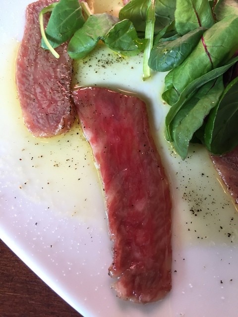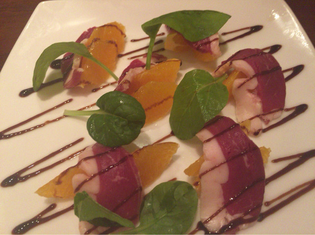 ▪️フランス産の何と鴨の生ハムのお皿が出ました。鴨の生ハムにフレッシュオレンジが合います。