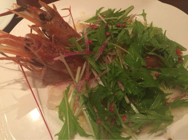 ▪️赤海老と鯛のカルパッチョ。海老の鮮度良いのでミソまで美味しくいただきました。