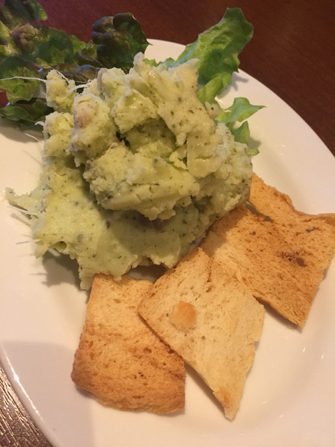 先ずは前菜と肉盛り、シーザーサラダ、相方の好きなポテサラを注文。ポテサラはバジル風味でなめらか美味しい。