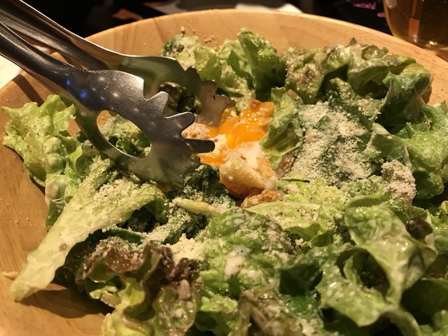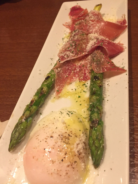 姪の息子が遅れて参戦。カルボナーラやチーズ盛り合わせなど美味い美味いとパクついてました。アスパラのシーザーサラダのインパクトが綺麗。
