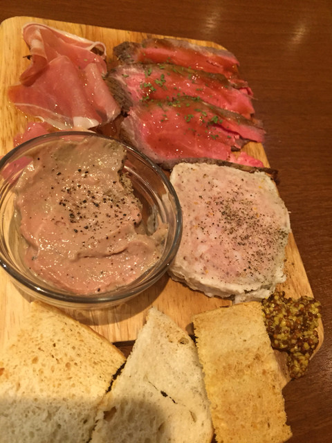 肉盛りはCP素晴らしい‼️ローストビーフにハモンセラーノ、パテドカンパーニュがリッチに盛ってありどれも美味しい〜♪(๑ᴖ◡ᴖ๑)♪