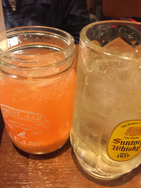姪は生フルーツジャーを色々飲んでご機嫌。ジャーの中に生フルーツ入ってどれも500円とリーズナブル。赤ワインボトルも2500円から❣️