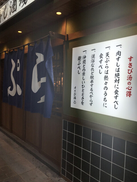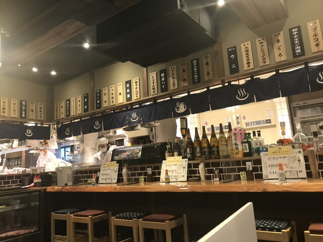お寿司が美味しいお店やね。店内は銭湯をモチーフにしていておもしろいです。テーブル席もカウンター席も両方ありテーブル間はまあまあ広めに取ってあって安心です。