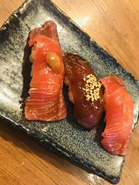 創作寿司のお肉握りがいろいろあって楽しいです。ネタ大きくシャリはちょうど良い酢加減です酢飯の量もいい感じ。寿司盛り合わせがめちゃ立派でびっくりでした。
