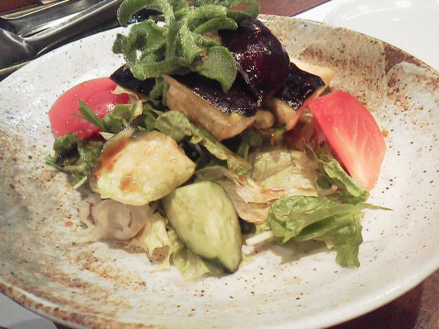 水茄子がすがすがしい味です、さっぱりしたドレッシング、量が多いのは嬉しいです。