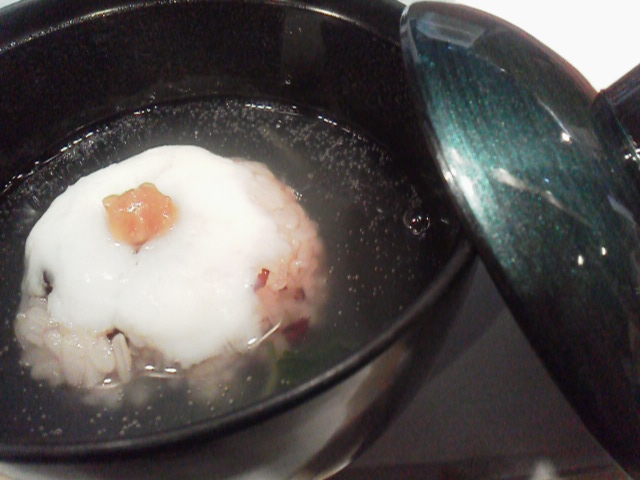 美味いですね、出汁が美味い。鱧が赤飯に乗ってまして蒸してあるのかな。それにあんかけでした。
