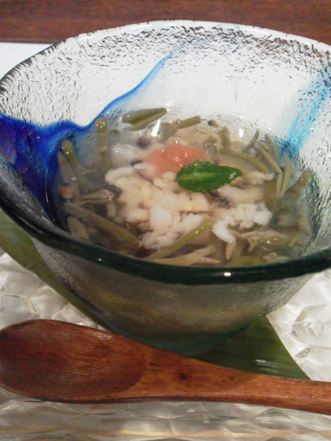 じゅんさいの水鉢、鱧が刻んで入ってます。爽やかな夏の味の顔合わせですね。