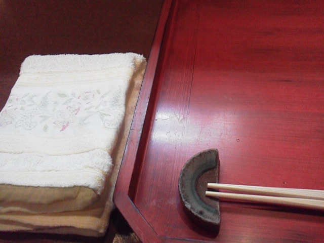 御膳の横に可愛いタオル、これはテーブルナプキン代わりのものでした。