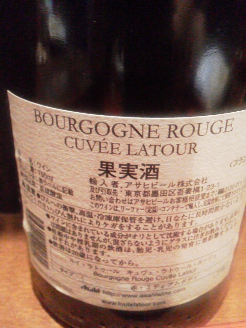 赤ワイン裏ラベル ブルゴーニュルージュ