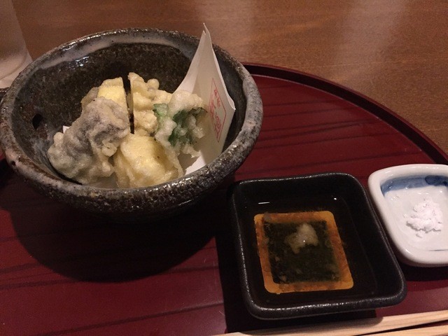 まこもだけの挟み揚げ・あわび茸天麩羅