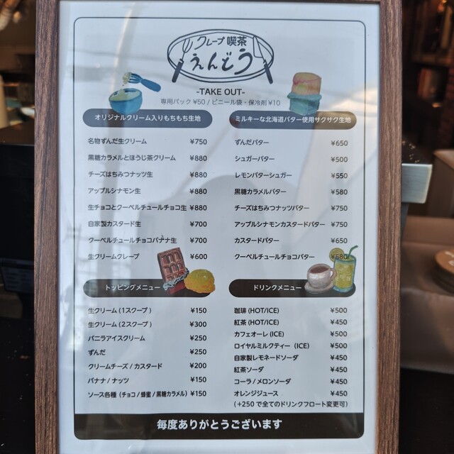 名物になってるずんだ生クリーム、ずんだシェイクはなかった