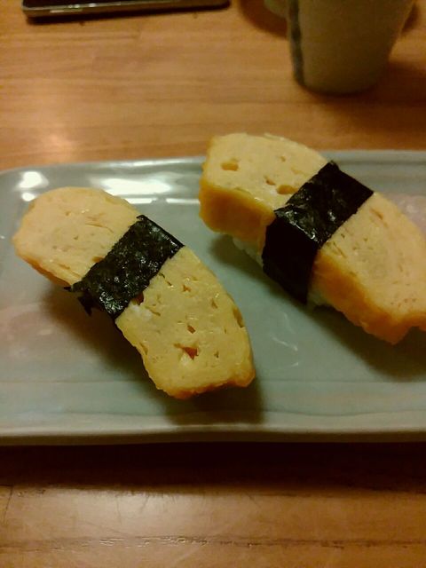 追加で、ひらまさのにぎりを頼もうとしたら、今日はなくて変わりにシマアジはどうでしょうということで、シマアジにぎり玉子にぎりを追加注文、