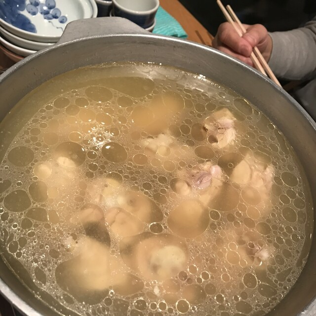 福岡名物水炊きの中でも比較的新しいお店。店前も玄関もモダンな感じ。ぶつ切りにした骨付きの鶏肉からはじわっと鶏の旨みが滴る。捏も大好きな軟骨入り。硬くもなく、柔らかくもなくちょうど良い心持ち。他の名店に比べてもアタマ一つ抜けていると思う。
