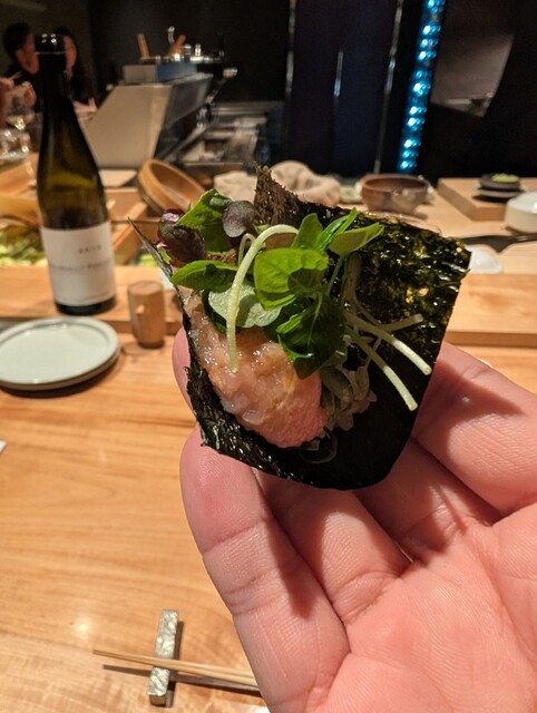 まるでトロのような食感の中落ちの手巻き