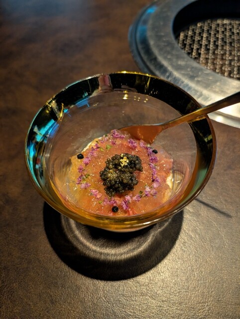 ▪️サーロインユッケ、キャビア、キタアカリのビシソワーズ