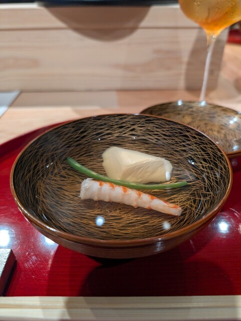 ▪️卵豆腐、車海老、インゲン豆のお椀