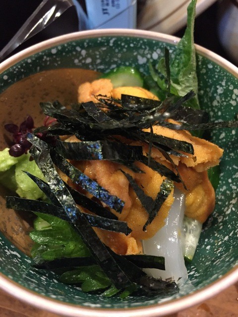 そして前食べて美味しかった赤貝の刺身、白子の揚げ出し、ウニ付だし(イカウニ)、白エビの唐揚げ。