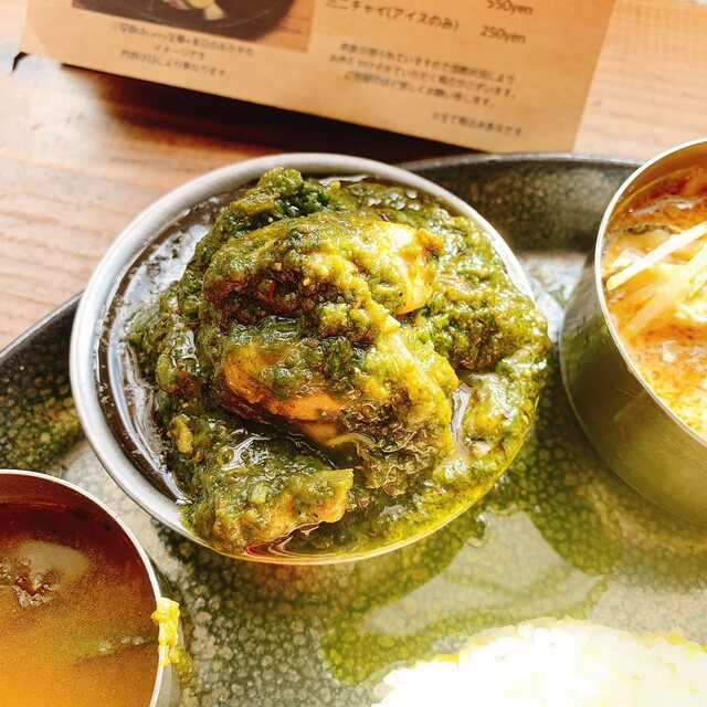 オーダーはcurry3種(Palak chicken Malai oyster Mutton chettinad)食後にはホットチャイを
