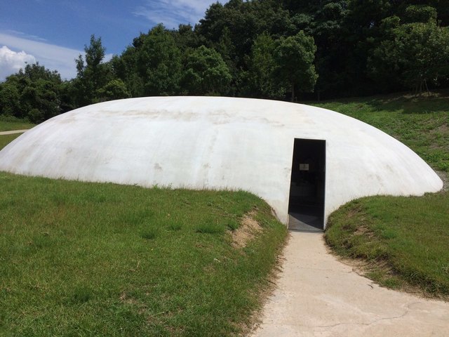瀬戸内海を望む豊島唐櫃の小高い丘に建設された豊島美術館。道の先にあります。(美術館の敷地内です)