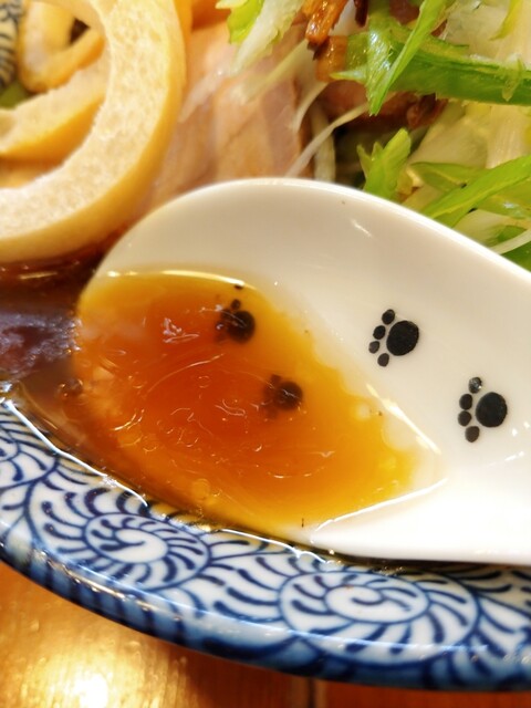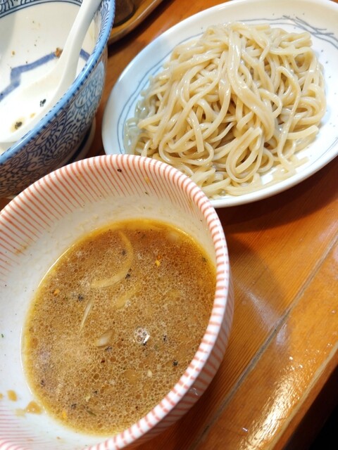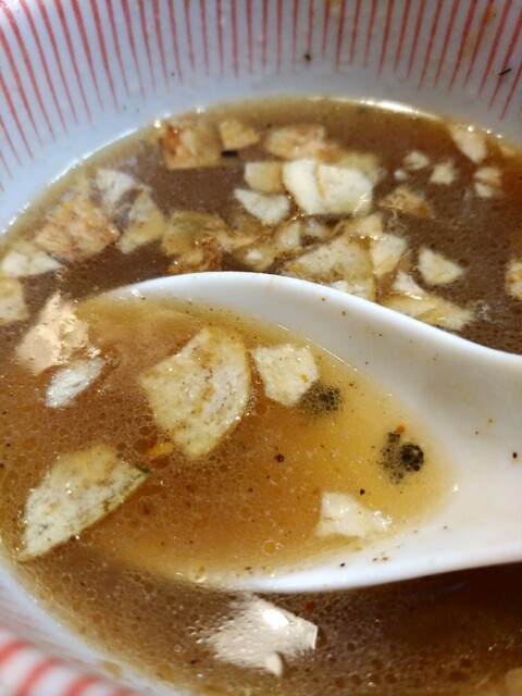 タレはやや白湯チックに濁り有り、味見するとけっこうな辛さ、されど旨味すごって感じ