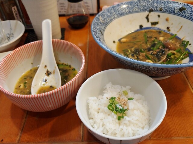 白湯チックに濃厚な辛ダレと海藻の旨味があり得んマリアージュ!