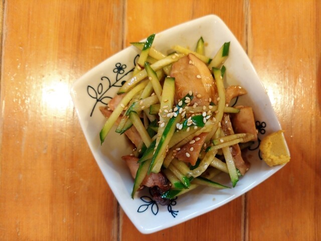 きゅうりと鶏チャーシューの中華和えは、初訪問のお客まで注文して、林店主が『どついうことや?』と漏らすほど飛ぶように出てるらしい