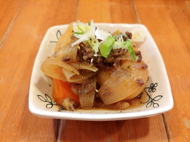 続いていただいた肉じゃがも、短角牛そぼろに惹かれて頼んだが、まん丸の小型ジャガが、味しゆみまくってんのに硬さがしっかり残っててどないなってんの?もうウマ過ぎ