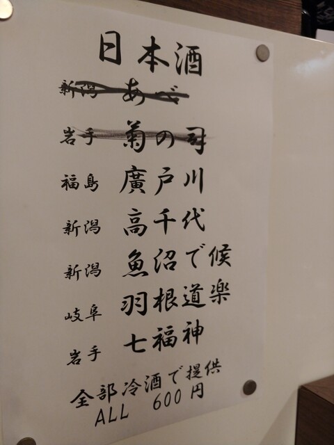 ・日本酒〜蔵粋純米生詰 くらしっく ひやおろし(喜多方)¥600