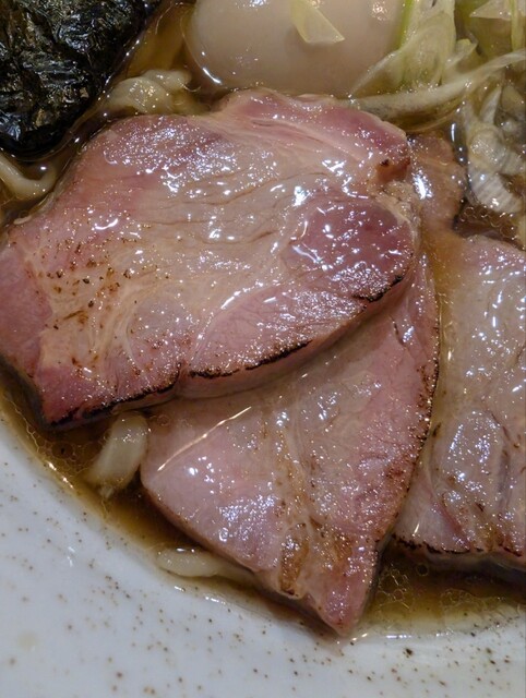 “ヤマシロ”リスペクト釜焼き肩ロースのチャーシューは、絶妙火入れでふっくらした仕上がりで、咀嚼すればするほど燻香と肉の旨味が融合しもう絶品