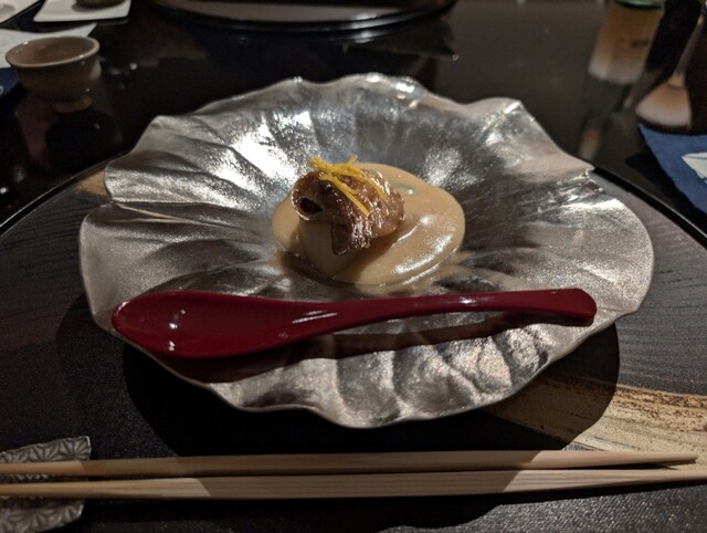 2日目和懐石のメインは『静岡和牛ロースト 山葵バルサミコソース …トリュフ塩…』