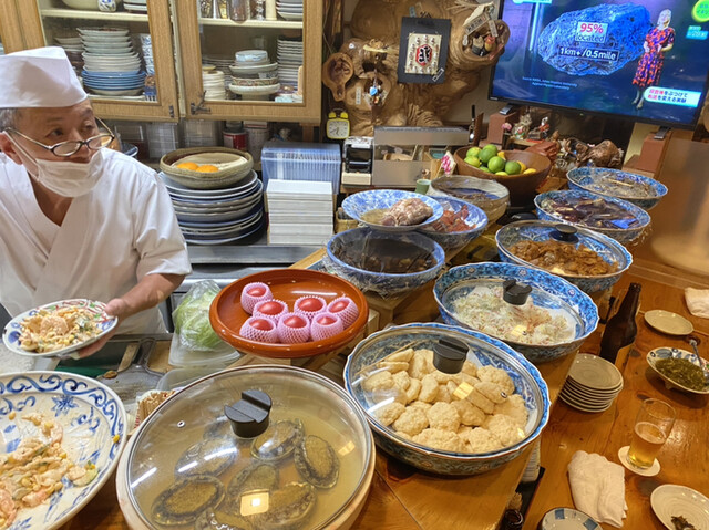 まず、目を奪われたのはカウンターにズラリと並んだ大皿料理の数々。