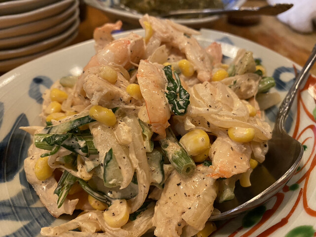 また、純和な酒肴と思いきや、めかぶにはハバネロを仕込んでいたり、トウモロコシサラダにはクレソンが潜んでいたり、遊びもある。