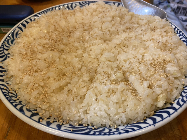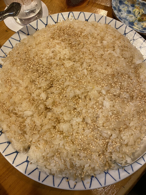 刺身を堪能した後は他のお客さんが頼んだガーリックライスに相乗りし、特別に1人前を持ってもらえた。