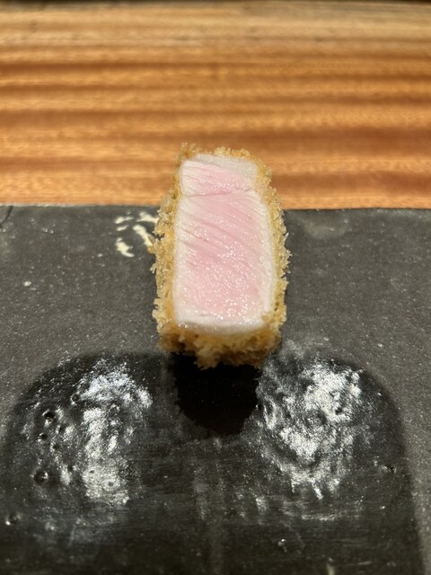 とんかつは一貫ずつ出てくるので、しっかりと味わって