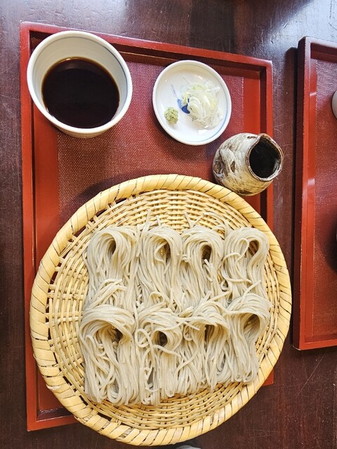 オーダーしたのは、かけそば、大もり、そばがき、天ぷら5品です。かけそばあたたかいのてそばの香りが存分に口の中に広がります。もちろん、新そばなのてもりそばでも十分、新そばの香ばしい香り、十分に感じる事ができます。