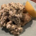 シャモロックの肝、シンプルだけど素材にこだわっていて、美味しいです。こんな臭みのないレバーなんて、めったにないです。そして、鰤のフライもリコッタチーズと山菜のサラダも、発想が面白く、楽しんでいただけました。