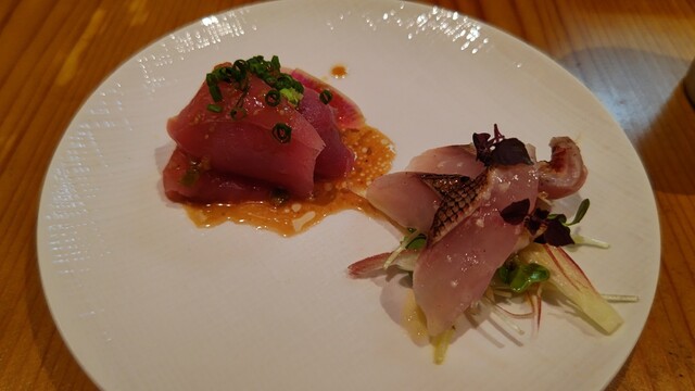 ④:お造り盛合せ(鮪、平鱸、櫻鱒)