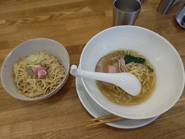先ずは底から返して塩タレと混ぜて一口、おおおおっ中華そばの麺とは全く違うコシの強めで濃い目の塩ダレが効いた中々にパンチの有る一品。 うんうん新鮮な美味しさです。