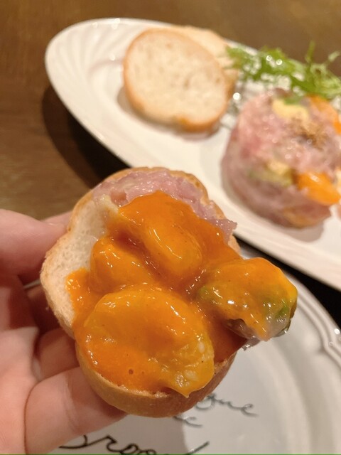 お料理本当に全て美味しかったのですが、特に私が感動したのは、お通しのウニウフマヨ、マグロとアボカド みかんのタルタル、ブローチのメリメロ、オイスタープラッター、手長海老のアメリケーヌソース エスプーマリコッタ、生ハムとポルチーニ茸のリゾット!