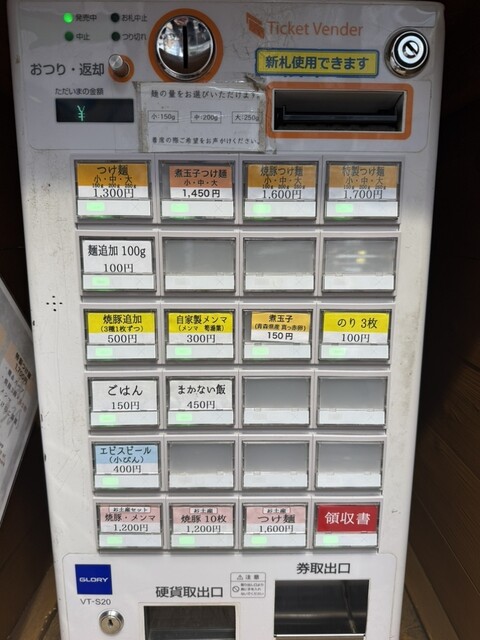 今日は思いっきり食べようと、特製つけ麺、麺100g増量(計350g)、まかない飯です。